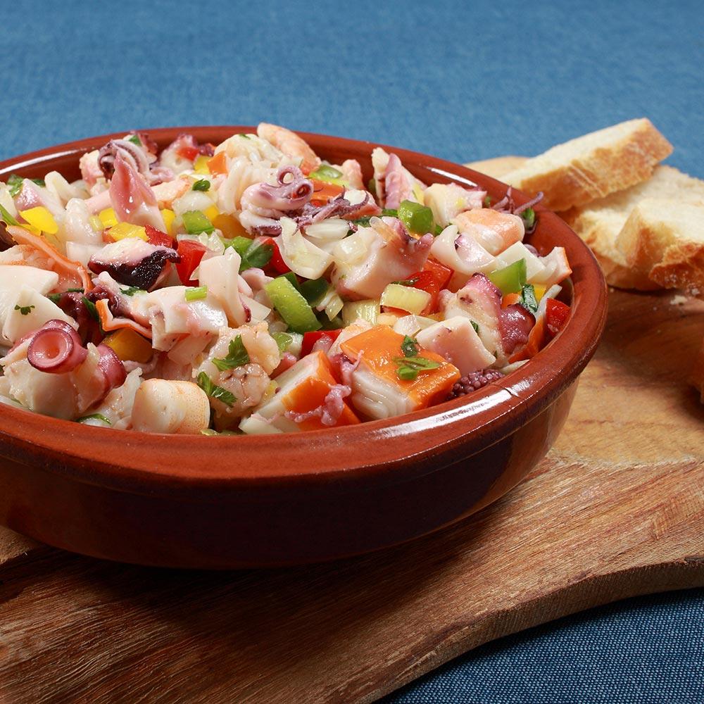 The EPIC Select seafood cocktail can be used to prepare a southern seafood salad or cocktail, or a frutti di mare pizza, au gratin fish stew or shell with oven-roasted fish.